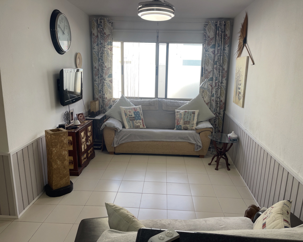 Lovely 2-bedroom, ground floor apartment in the hugely popular fishing village of El Cotillo! This apartment is located within about 50m from the new and old harbour, in the heart of the original El Cotillo. The apartment is one of eight in the development, and the accommodation comprises and entrance hallway, 2 bedrooms both with fitted wardrobes, a bathroom with shower over bath, and an open-plan lounge / dining / kitchen. The kitchen is well equipped with ceramic hob, overhead extractor fan, oven, washing machine, fridge-freezer and a small breakfast bar. Large windows offer plenty of light to the living area and bedrooms.