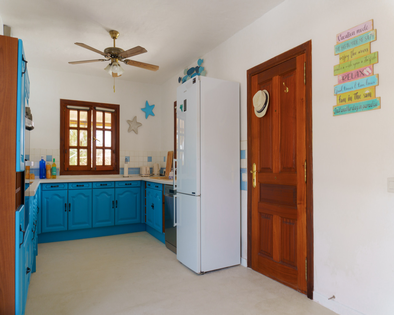 Charming, detached 3 bedroom villa in the extremely popular village of Lajares and just a short walk (0.6 km) to main centre for restaurants, bars and shops. The villa benefits a very private pool area with terraces, stone BBQ, covered pergolas for out-door dining and a heated swimming pool! The accommodation comprises 3 bedrooms and 2 bathrooms, a fully fitted kitchen with dining area. The lounge has an attractive feature fireplace and glazed doors to the pool area. In addition to the garage, the property has plenty of parking space and beautiful, well-established gardens. The pool is heated via a solar tube system located on the garage roof top.